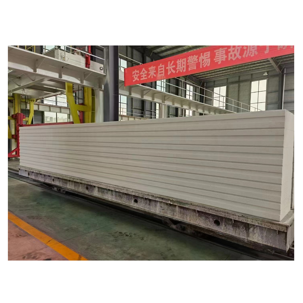 The slurry in the mould stays in the curing room for 2-3hours. The temperature in the curing room should be kept at 50-70℃. After 2-3 hours, the slurry will harden and become lumpy, but cake-like, hard and soft. First, the cake is pulled out of the curing room together with the mould, and the steel cage crane pulls the drill rod out of the cake. The cake will then be rotated 90 degrees in the air by a reverse crane and placed on the cutting cart. The cutting trolley will move to the position of the cutting machine to complete side cutting, horizontal cutting and vertical cutting.