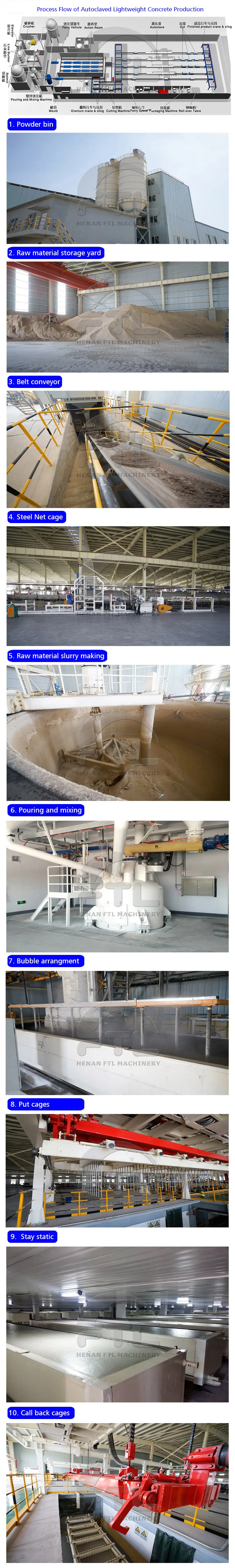 Sand, cement, lime, gypsum, aluminum paste should be stored in suitable place separately. Cement can be stored in closed silo. Lime after grinding should be stored in lime silo. Aluminum or aluminum paste must be stored hermetically, and cannot be kept longer than 6 months.